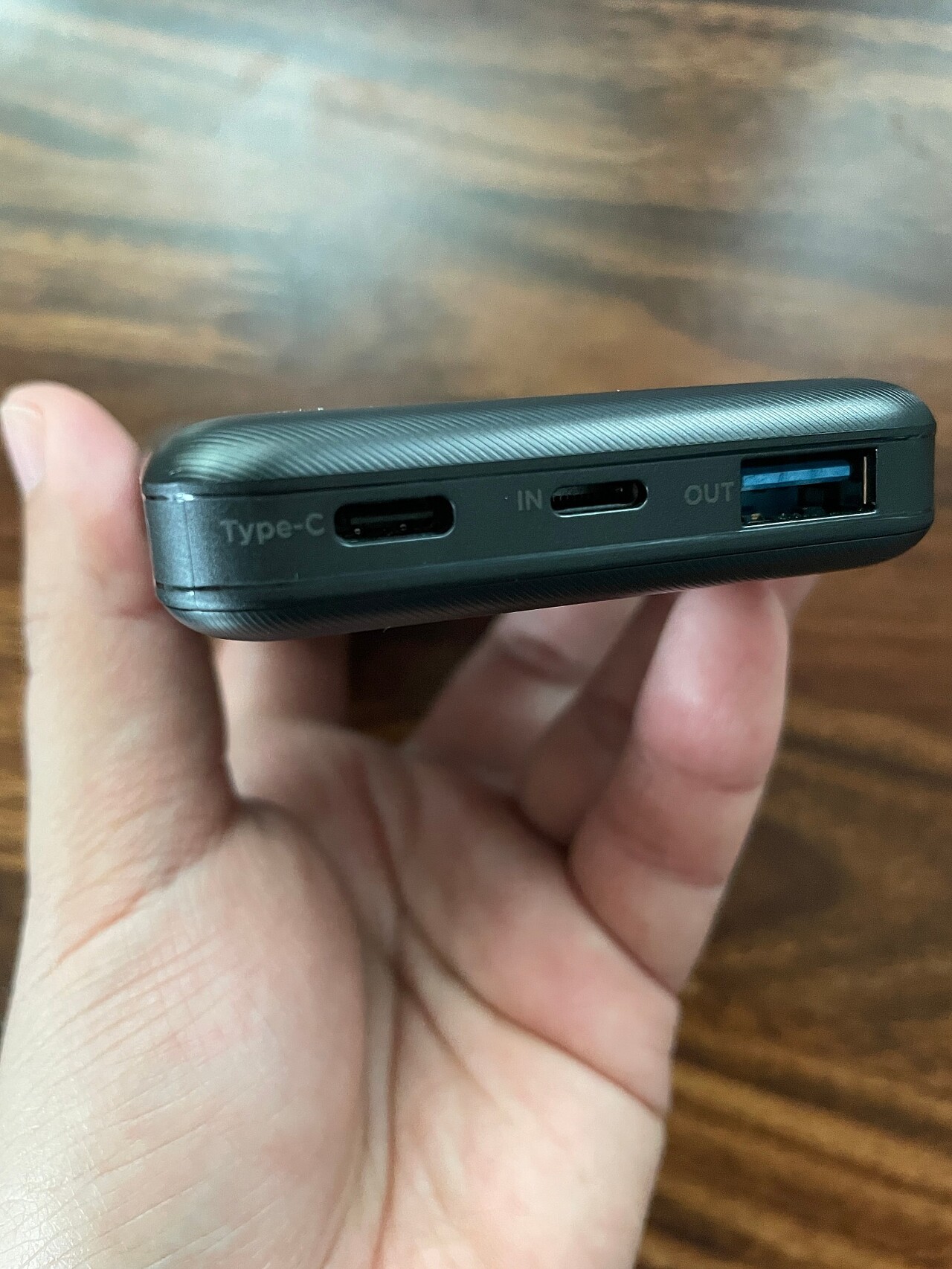 제품 하단엔 Type-C 입출력(좌), 라이트닝 포트(중), USB 출력포트 이렇게 3개의 포트가 있습니다.