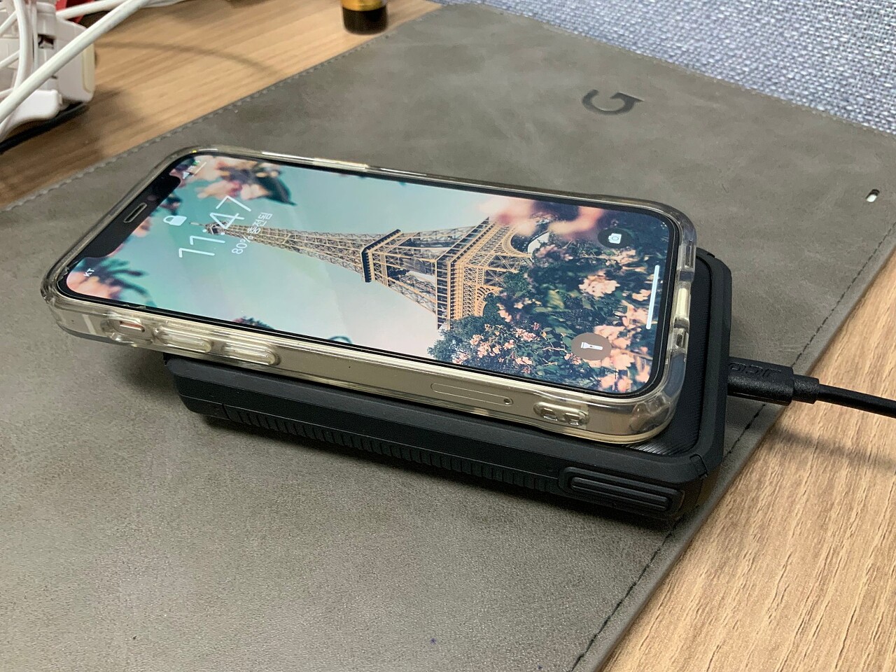 그런데 아이패드와 동시 충전시 시작은 무선충전도 동시에 진행되지만 무선충전중인 아이폰을 분리후 일정시간이 지나 올려놓으면 다시 충전이 되지않습니다. 아이패드프로는 계속 충전중이데 반해 아이폰12 미니는 충전이 되고있지않네요. 하지만 전원버튼을 다시 눌러주면 다시 무선충전을 할 수 있습니다.^^;;