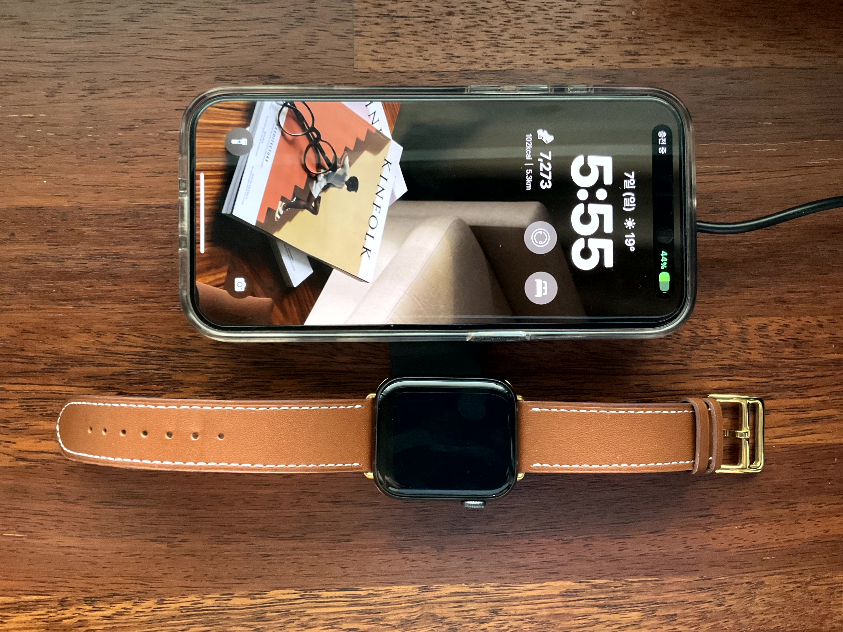 그뒤에 애플워치와 아이폰을 동시에 충전했을때 아이폰 30%에서 30 후 44%로 14%가 충전이 되네요. 애풀워치는 거의 완충이된걸로 보입니다.^^